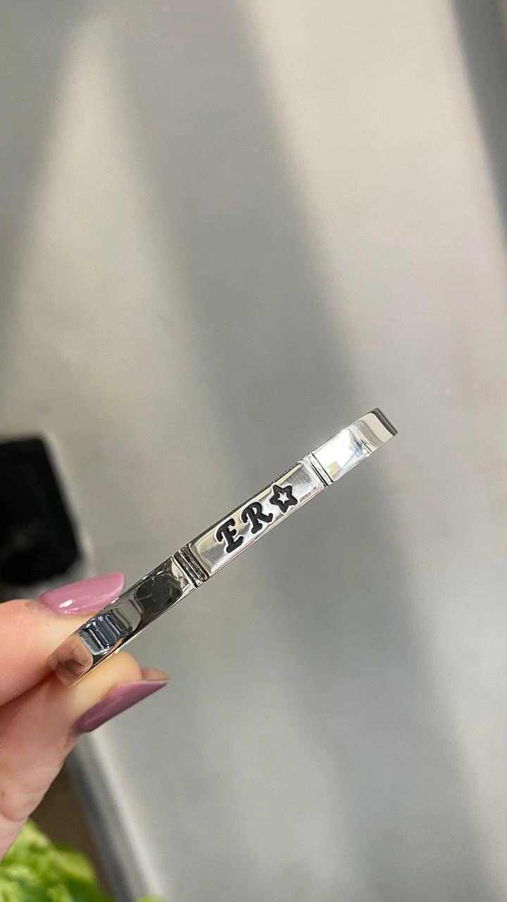 Media esclava con iniciales: pulsera personalizada y artesanal en plata 925 Esta pulsera está cuidadosamente hecha a mano en nuestro taller, garantizando calidad y detalle en cada pieza. Fabricada en plata 925, su diseño incluye un grabado fresado con iniciales, que aporta un toque único y personal. Ideal para quienes buscan una joya exclusiva y elegante. Características principales: - Material: Plata 925 - Personalización: grabado fresado con iniciales - Elaboración: 100% artesanal